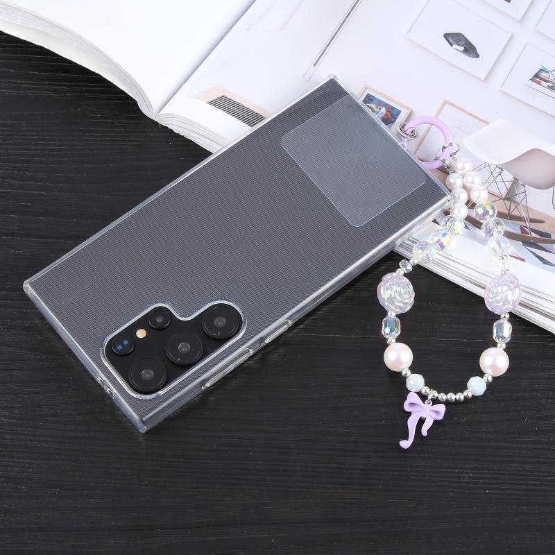 Bowknot Flowers Bead Chain Anti-lost Phone Short Lanyard(Purple)