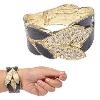 Μεταλλικά στρας φύλλα σε σχήμα Punk βραχιόλια (μαύρο)