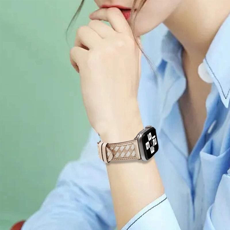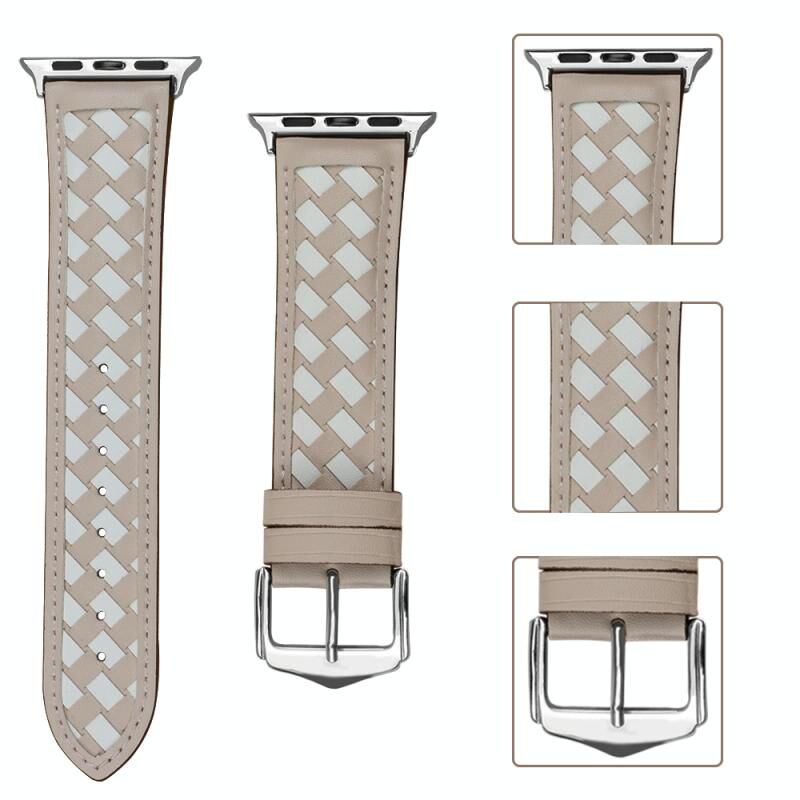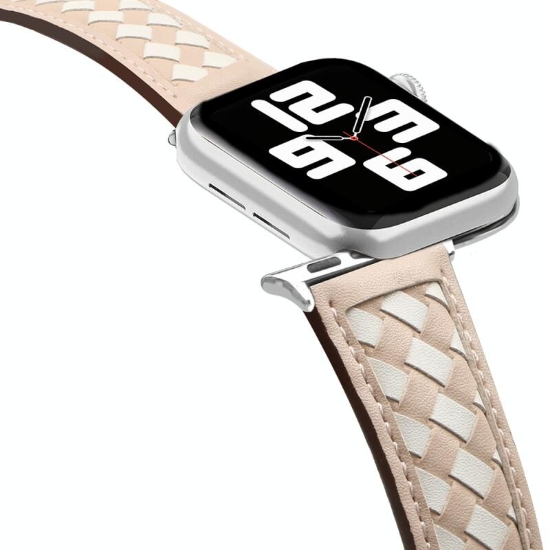 Λουρί ρολογιού Apple Watch με πλεκτή γνήσια δερμάτινη κατασκευή για Series 9&8&7 41mm / SE 3&SE 2&6&SE&5&4 40mm / 3&2&1 38mm (Απρίκοτο+Μπεζ)