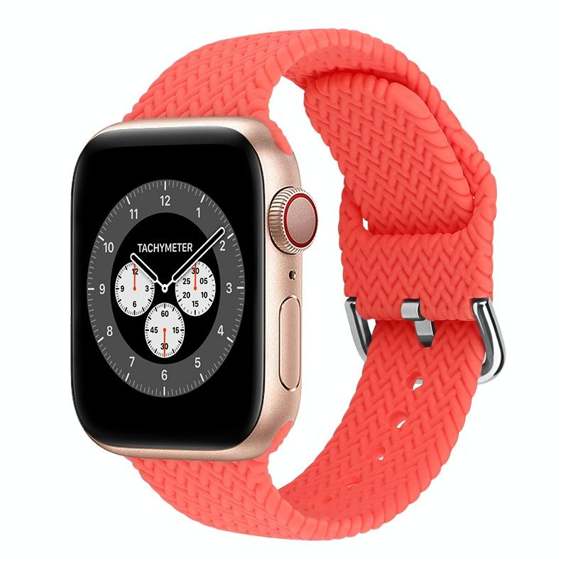 Λουρί ρολογιού σιλικόνης με πλέγμα και αγκράφα για Apple Watch Series 9&8&7 41mm / SE 3&SE 2&6&SE&5&4 40mm / 3&2&1 38mm (Φωτεινό Ροζ)
