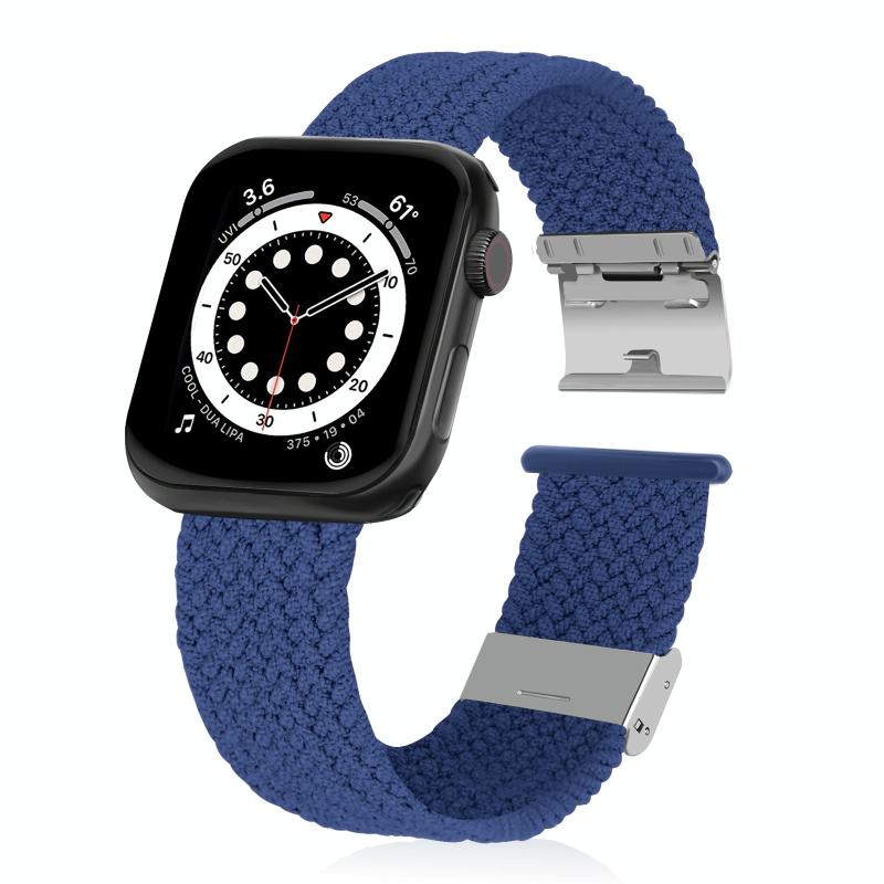 Λουρί ρολογιού πλεχτό + από ανοξείδωτο ατσάλι για Apple Watch Series 7 45mm / 6 & SE & 5 & 4 44mm / 3 & 2 & 1 42mm (Κάθετο Μπλε Λευκό)