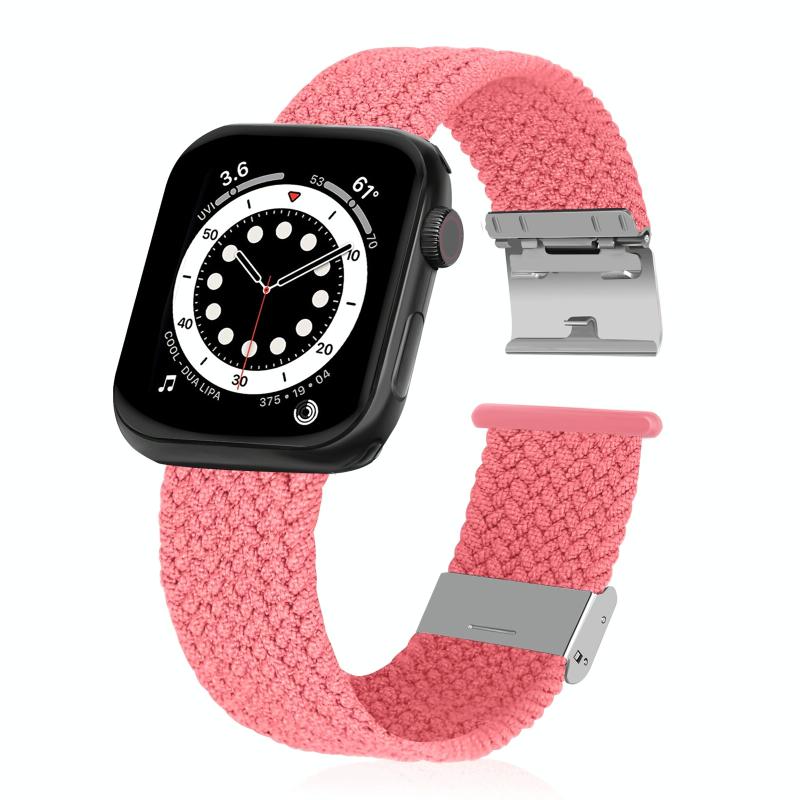 Λουρί ρολογιού πλεχτό + από ανοξείδωτο ατσάλι για Apple Watch Series 7 45mm / 6 & SE & 5 & 4 44mm / 3 & 2 & 1 42mm (ρόζ)