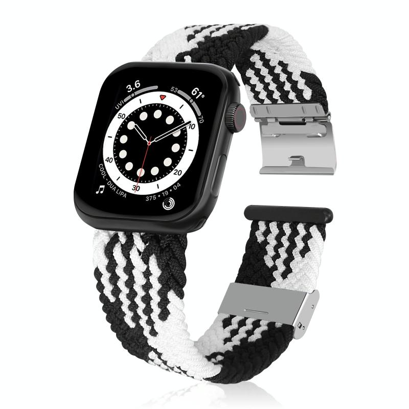 Λουρί ρολογιού πλεχτό + από ανοξείδωτο ατσάλι για Apple Watch Series 7 45mm / 6 & SE & 5 & 4 44mm / 3 & 2 & 1 42mm (Κάθετο Μπλε Λευκό)