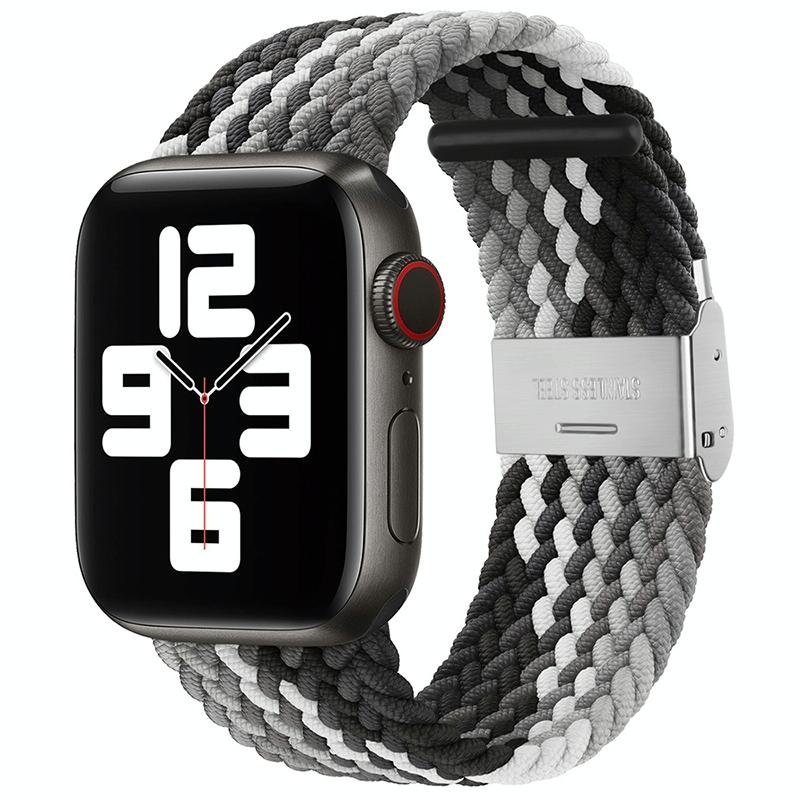 Braided + Stainless Steel Watch Band For Apple Watch Series 9&8&7 41mm / SE 3&SE 2&6&SE&5&4 40mm / 3&2&1 38mm(Black Color)
