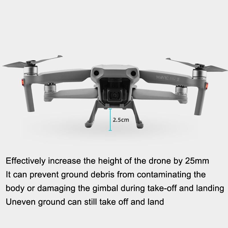 4. Αυξάνει αποτελεσματικά το ύψος του drone κατά 25mm, το οποίο μπορεί να αποφύγει τα επίγεια συντρίμμια από το να μολύνουν το σώμα ή να καταστρέψουν το gimbal κατά την απογείωση και την προσγείωση, και μπορεί ακόμα να απογειωθεί και να προσγειωθεί σε ανώμαλο έδαφος.