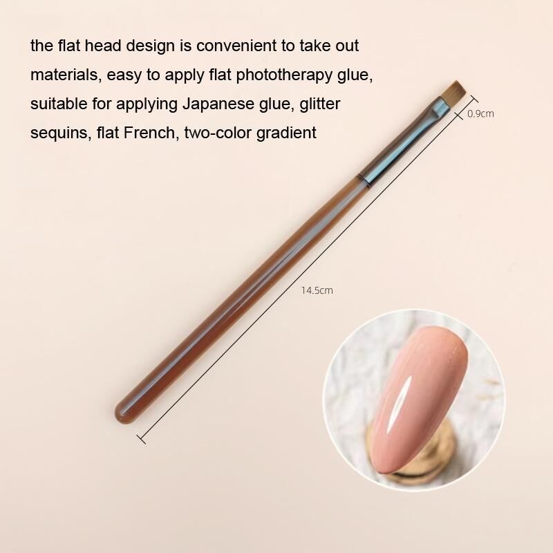 7. Flat head pen: the flat head design is convenient to take out materials, easy to apply flat phototherapy glue, suitable for applying Japanese glue, glitter sequins, flat French, two-color gradient