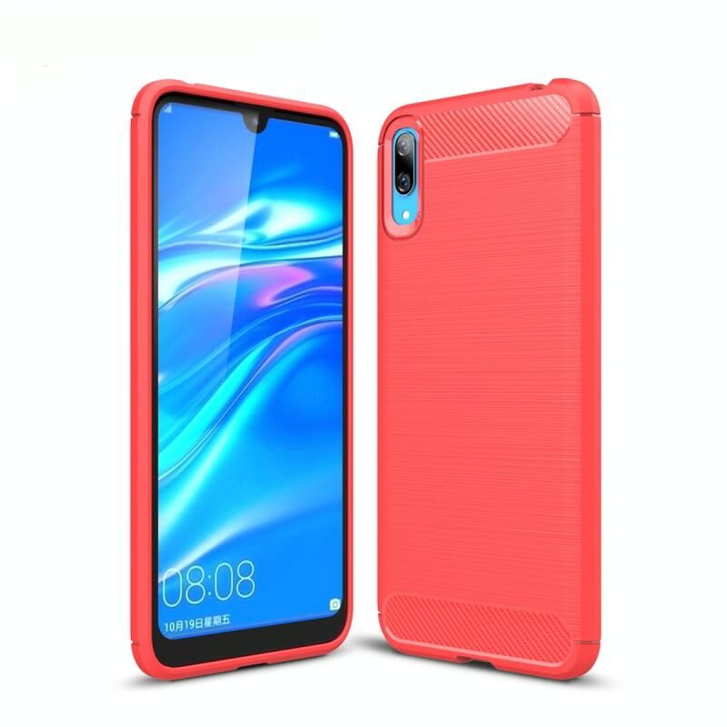 Βουρτσισμένη υφή Carbon Fiber Shockproof TPU υπόθεση για Huawei Enjoy 9 (κόκκινο)