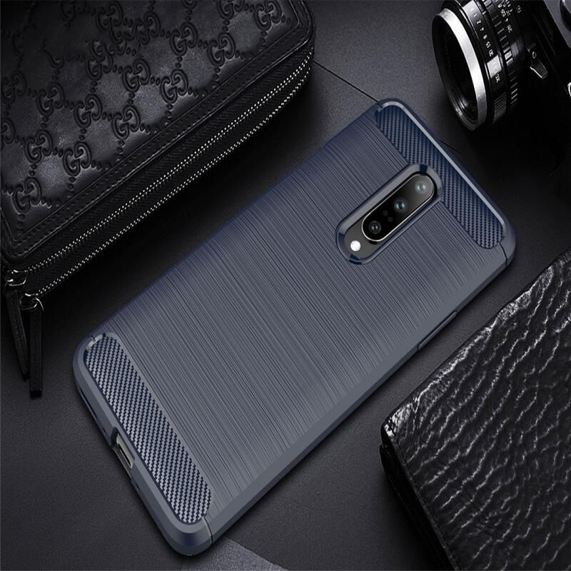 Βουρτσισμένη υφή Carbon Fiber Shockproof TPU υπόθεση για OnePlus 7 (Navy Blue)
