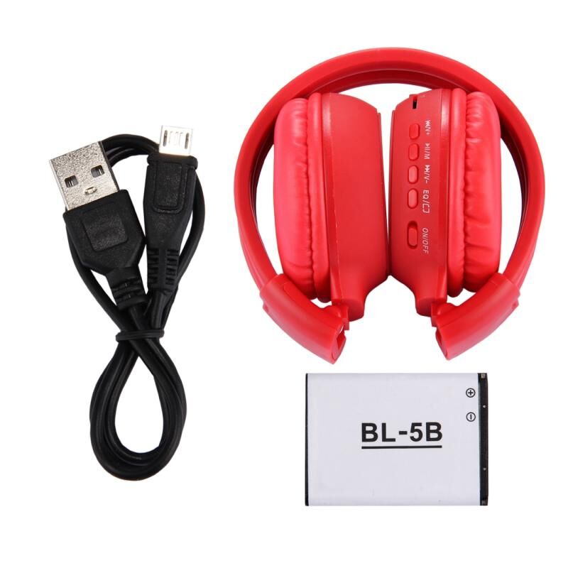 BS-N65 Headband Folding Stereo HiFi Wireless Headphone Headset with LCD Screen & TF Card Slot & LED Indicator Light & FM Function(Red)