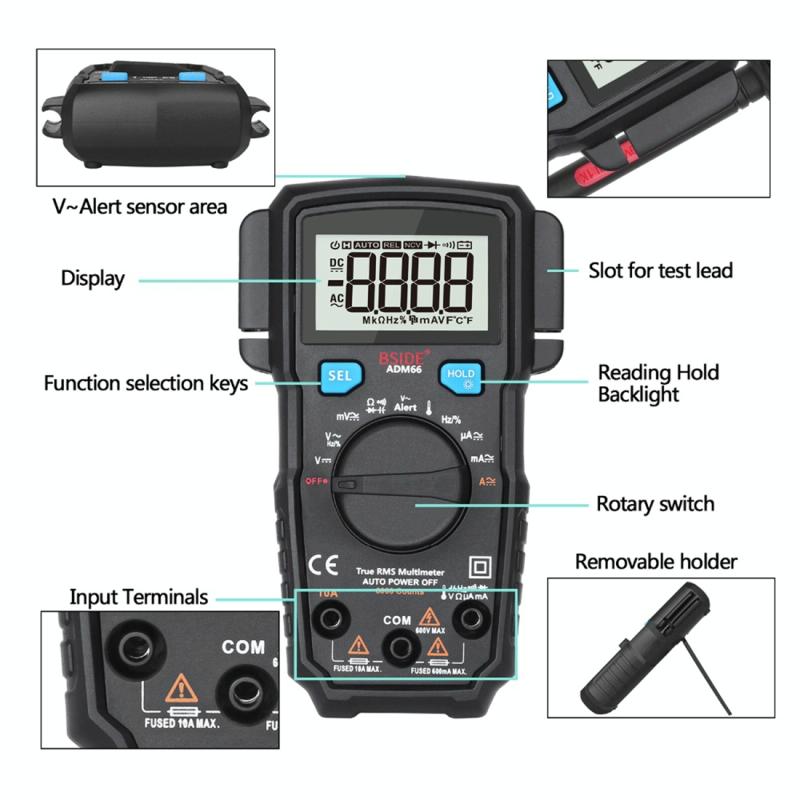 1. Αυτόματη εμβέλεια, 6000 μετρήσεις, αληθινή μέτρηση rms.