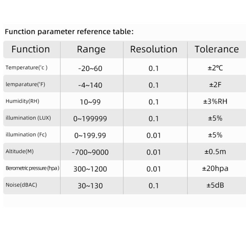 3. Illumination: 0~199999 LUX / 0-199.99 FC