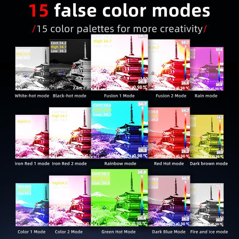 2. Παλέτα χρωμάτων εικόνας: μαύρο θερμό/κόκκινο σίδερο/λευκό θερμό/σύντηξη/καφέ/κόκκινο θερμό/πράσινο θερμό/ουράνιο τόξο