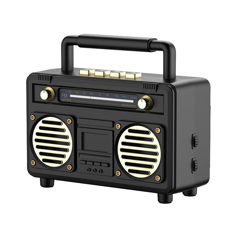 BT21 Ρετρό USB Flash Drive FM Radio Ασύρματο ηχείο Bluetooth, χρώμα: Μαύρο