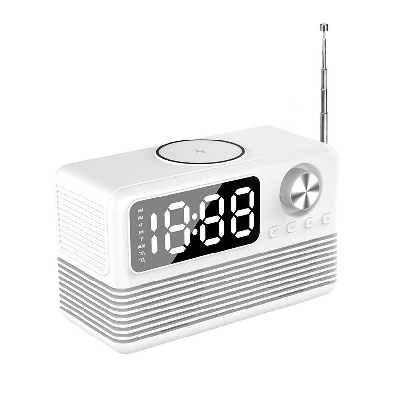 BT509 LED Bluetooth 5.3 ηχείο ξυπνητήρι ρολόι μουσική οθόνη ραδιόφωνο (λευκό)
