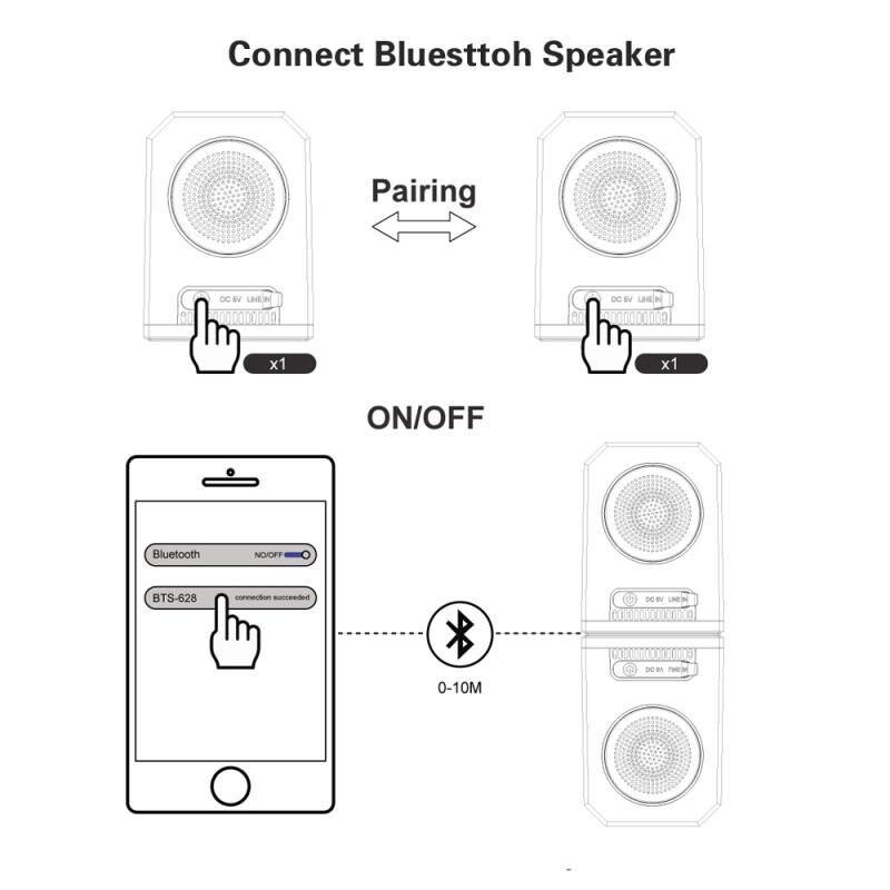 6.Adopts BT5.0 technology, supports almost all BT-enabled devices, offers the wireless range up to 10m,With handsfree phone call.