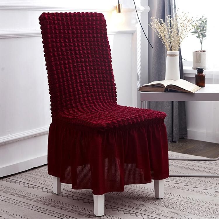Κάλυμμα Καρέκλας με Φούστα, Ελαστικό, Καθολικό, Μονό, Κάλυμμα Σκαμπό, Υφασμάτινο με Πλέγμα, Μέγεθος: Καθολικό (Μπορντό)