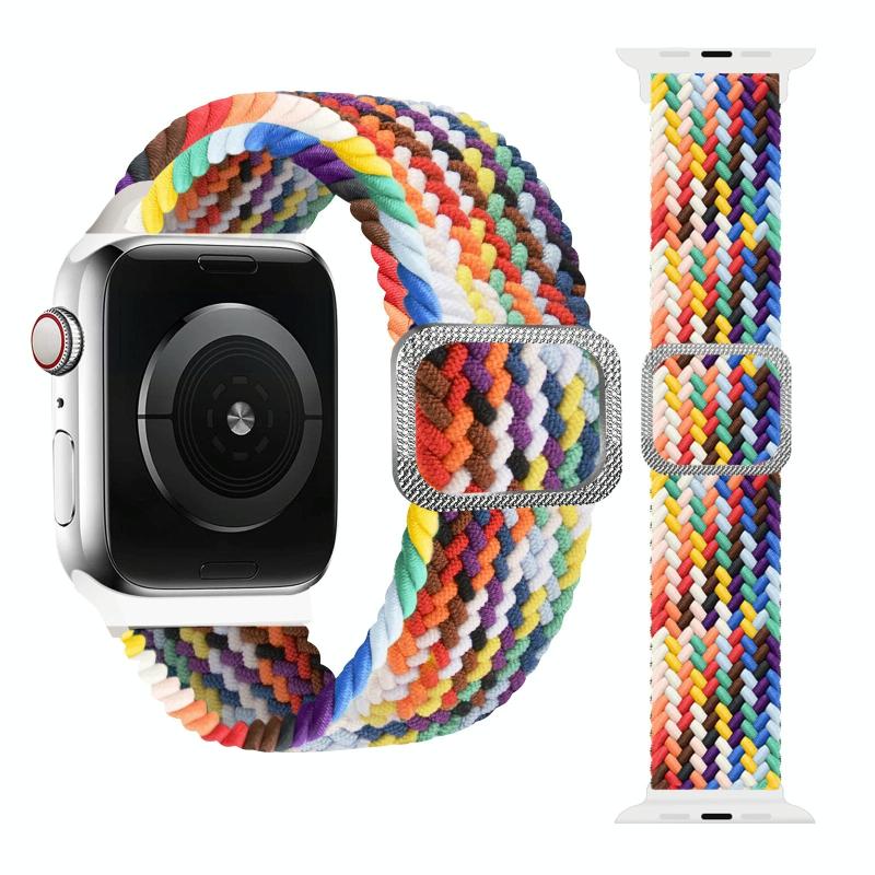 Λουρί ρολογιού με αγκράφα πλεχτό ελαστικό για Apple Watch Ultra 49mm & Watch Ultra 2 49mm / Series 9 & 8 & 7 45mm / SE 3 & SE 2 & 6 & SE & 5 & 4 44mm / 3 & 2 & 1 42mm (Χρώμα ουράνιου τόξου)