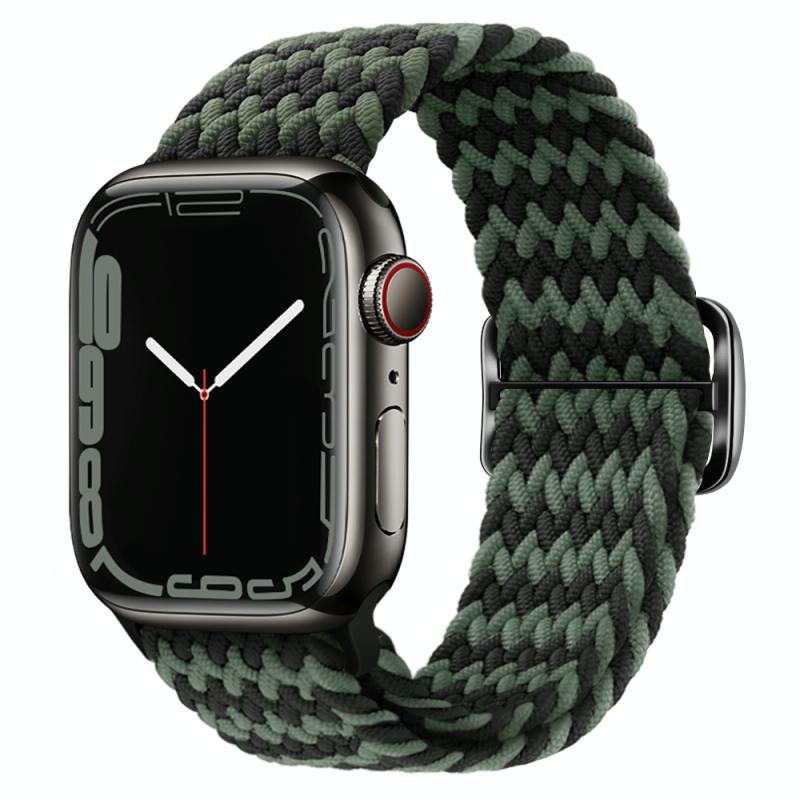 Λουρί ρολογιού με πόρπη από νάιλον πλεγμένο για Apple Watch Ultra 49mm & Watch Ultra 2 49mm / Series 9 & 8 & 7 45mm / SE 3 & SE 2 & 6 & SE & 5 & 4 44mm / 3 & 2 & 1 42mm (Μαύρο πράσινο)
