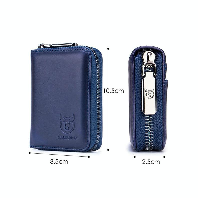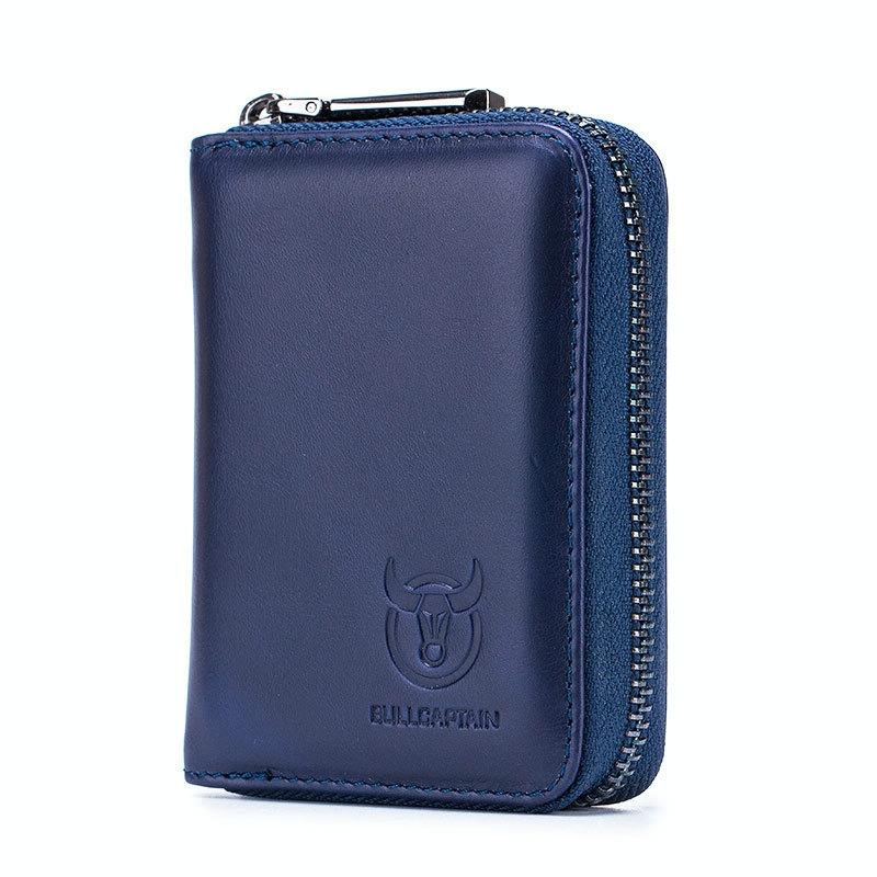 BULL CAPTAIN 05 Head Layer Leather Card Bag Men Casual Leather Driver License Card Package(Dark Blue)