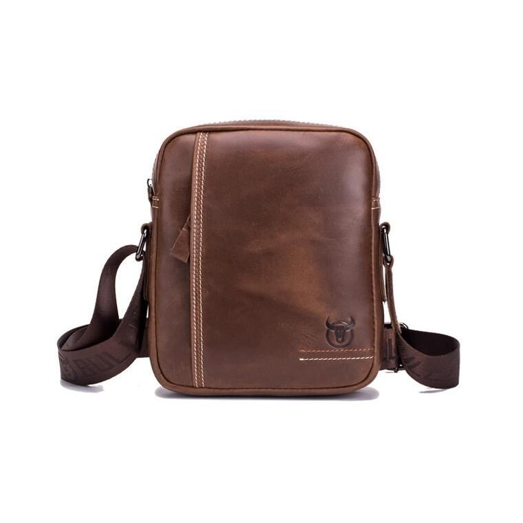 BULL CAPTAIN 228 Men Leather Shoulder Bag First-Layer Cowhide Casual Mini Diagonal Bag(Brown) (BULL CAPTAIN)