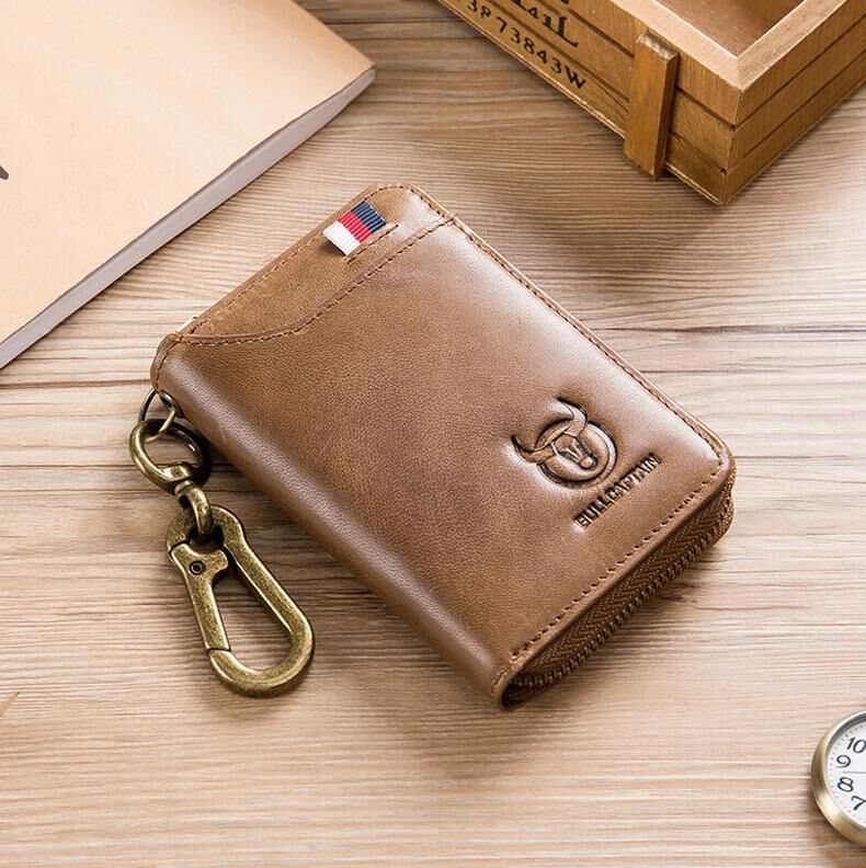 BULL CAPTAIN 474 Multifunctional Leather Coin Purse Hanging Waist Anti-Brush Key Bag, Colour: Yellow Brown (BULL CAPTAIN)