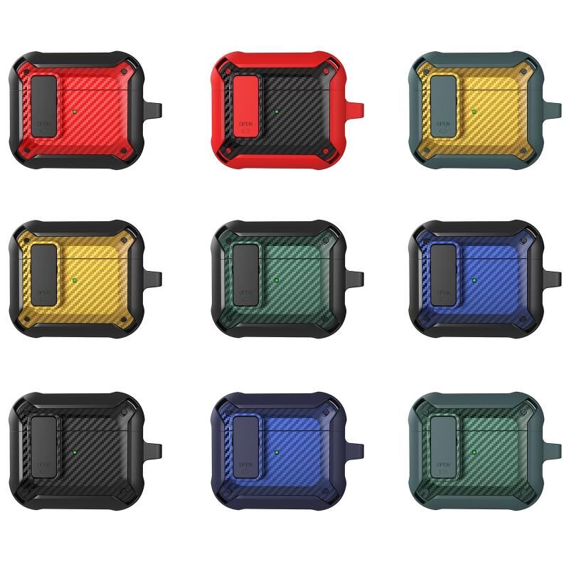 Bumblebee Carbon Fiber Earphone Protective Case with Switch For AirPods 3(Blue)