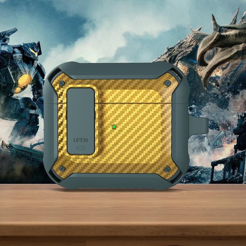 Bumblebee Carbon Fiber Earphone Protective Case with Switch For AirPods 3(Green Yellow)