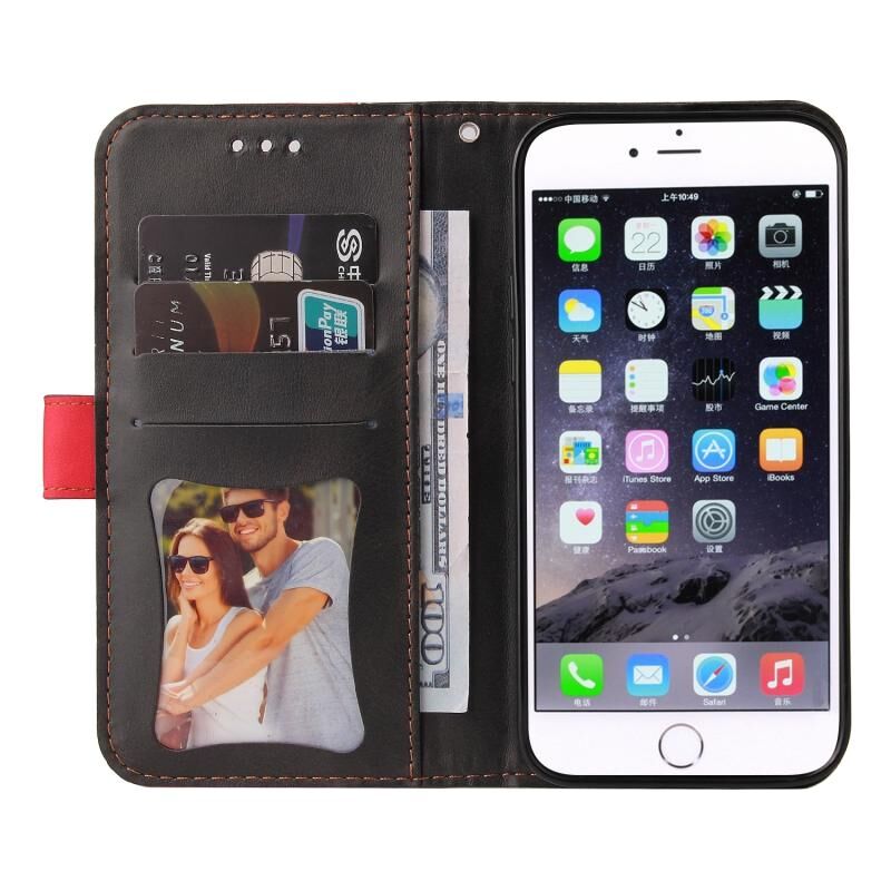 Θήκη Business Stitching-Color Horizontal Flip από Δερματίνη PU με Θήκη & Θήκες Καρτών & Φωτογραφική Κορνίζα για iPhone 6s / 6 (Κόκκινο)