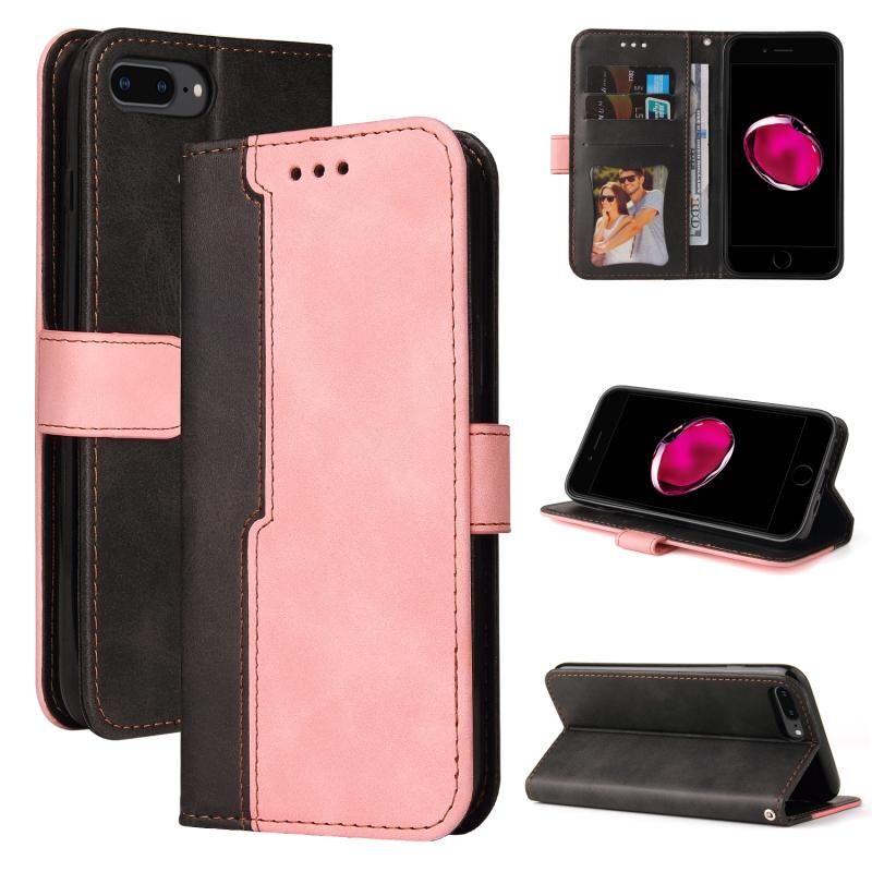 Θήκη Business Stitching-Color Horizontal Flip από Δερματίνη PU με Θήκη & Θήκες Καρτών & Φωτογραφική Κορνίζα για iPhone 8 Plus / 7 Plus (Κόκκινο)