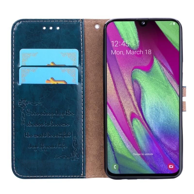 Business Style Oil Wax υφή οριζόντια Flip δερμάτινη θήκη για Galaxy A40, με θήκη & υποδοχές για κάρτες & πορτοφόλι (Μπλε)