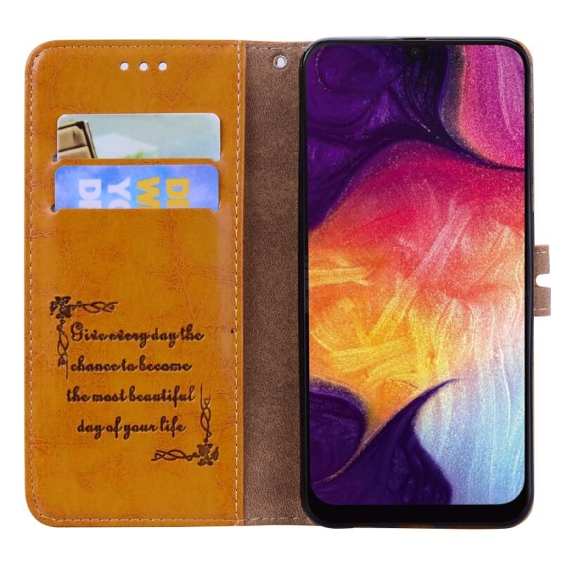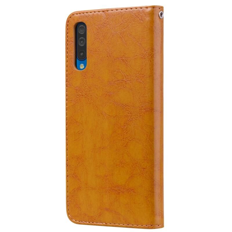 Business Style Oil Wax Texture Horizontal Flip Leather Case για Galaxy A50, με θήκη & υποδοχές για κάρτες & πορτοφόλι (Καφέ)