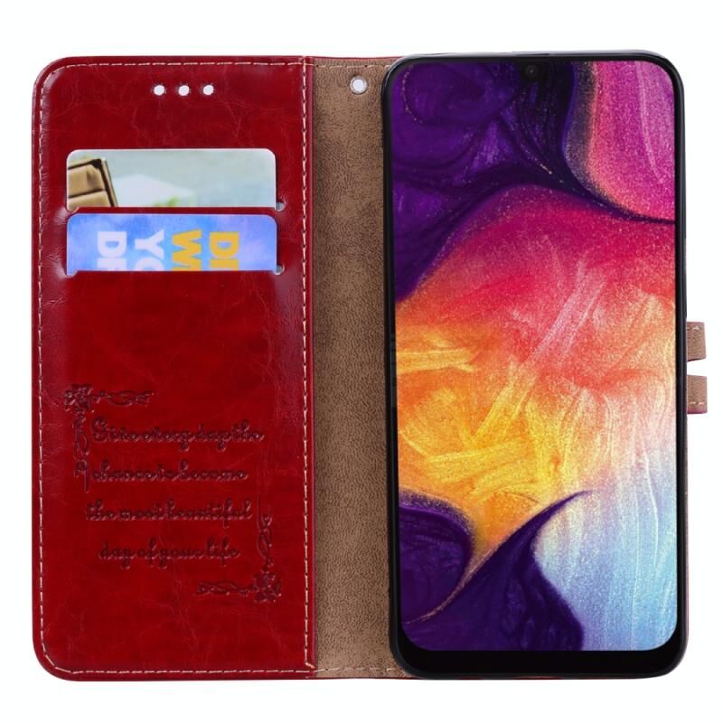 Business Style Oil Wax Texture Horizontal Flip Leather Case για Galaxy A50, με θήκη & υποδοχές για κάρτες & πορτοφόλι (Κόκκινο)