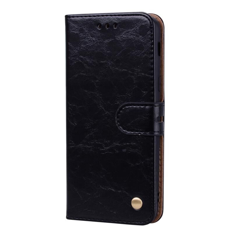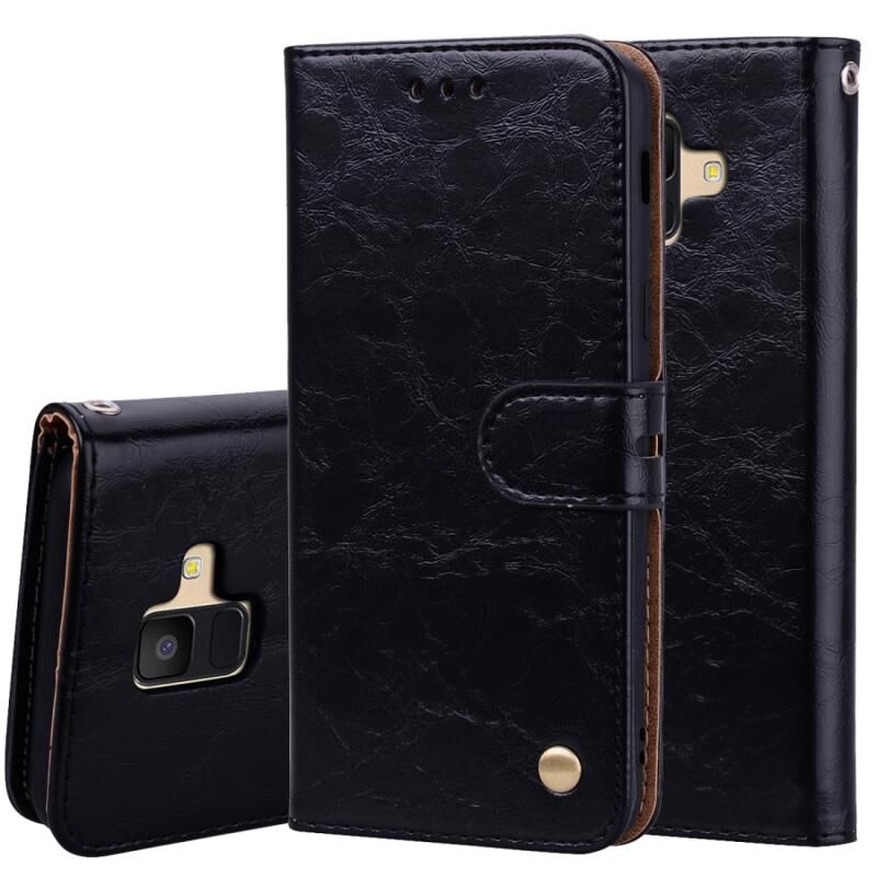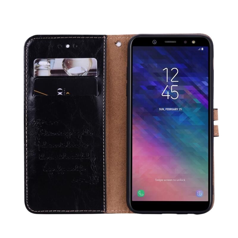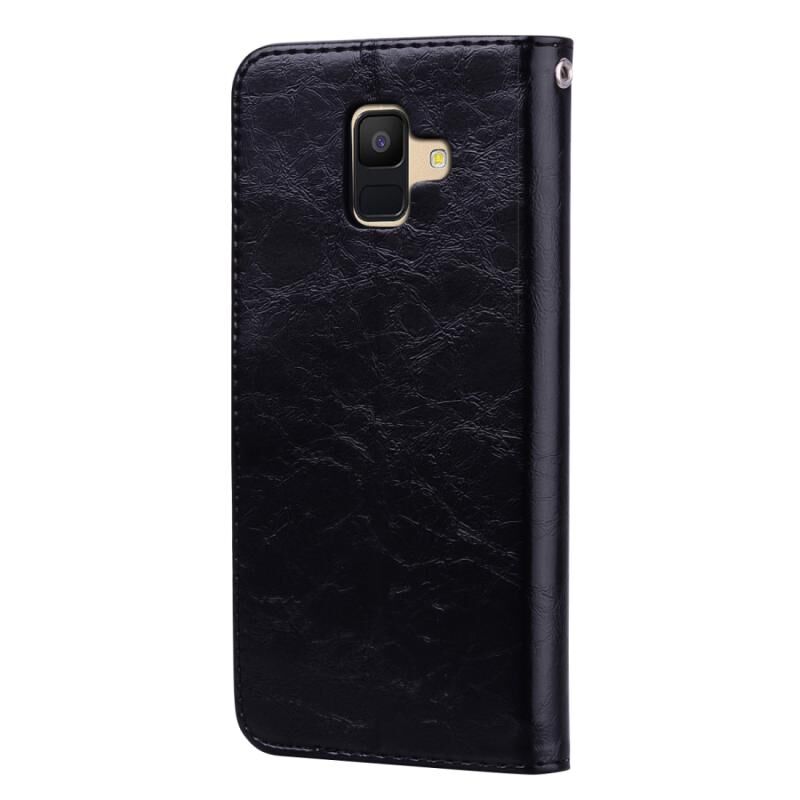Business Style Oil Wax Texture Horizontal Flip Leather Case για Galaxy A6 (2018), με θήκη & υποδοχές για κάρτες & πορτοφόλι (μαύρο)