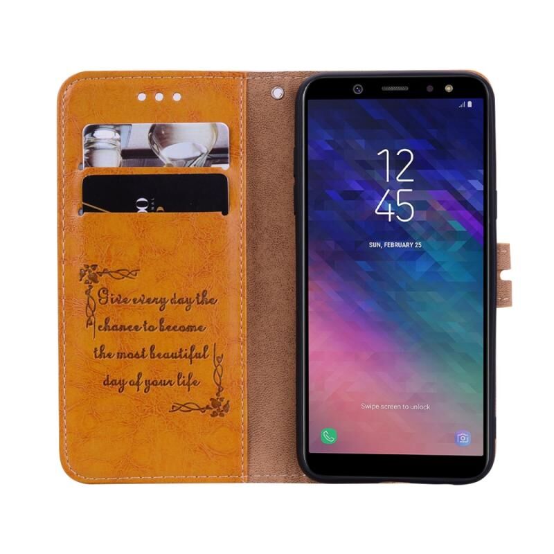 Business Style Oil Wax Texture Horizontal Flip Leather Case για Galaxy A6 (2018), με θήκη & υποδοχές για κάρτες & πορτοφόλι (καφέ)