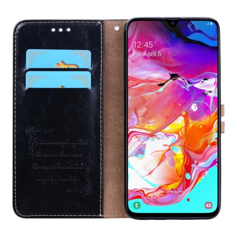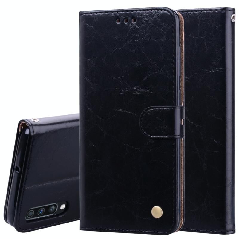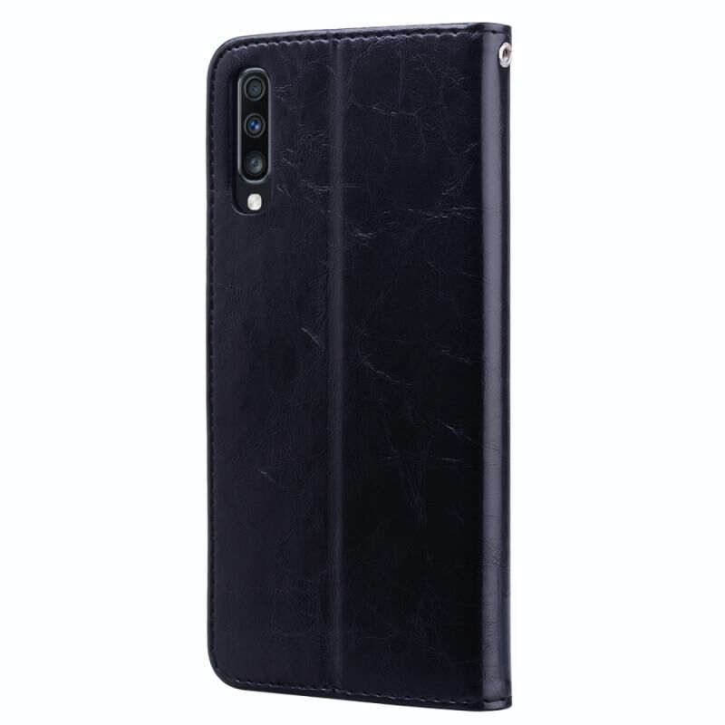 Business Style Oil Wax Texture Horizontal Flip Leather Case για Galaxy A70, με θήκη & υποδοχές για κάρτες & πορτοφόλι (Μαύρο)