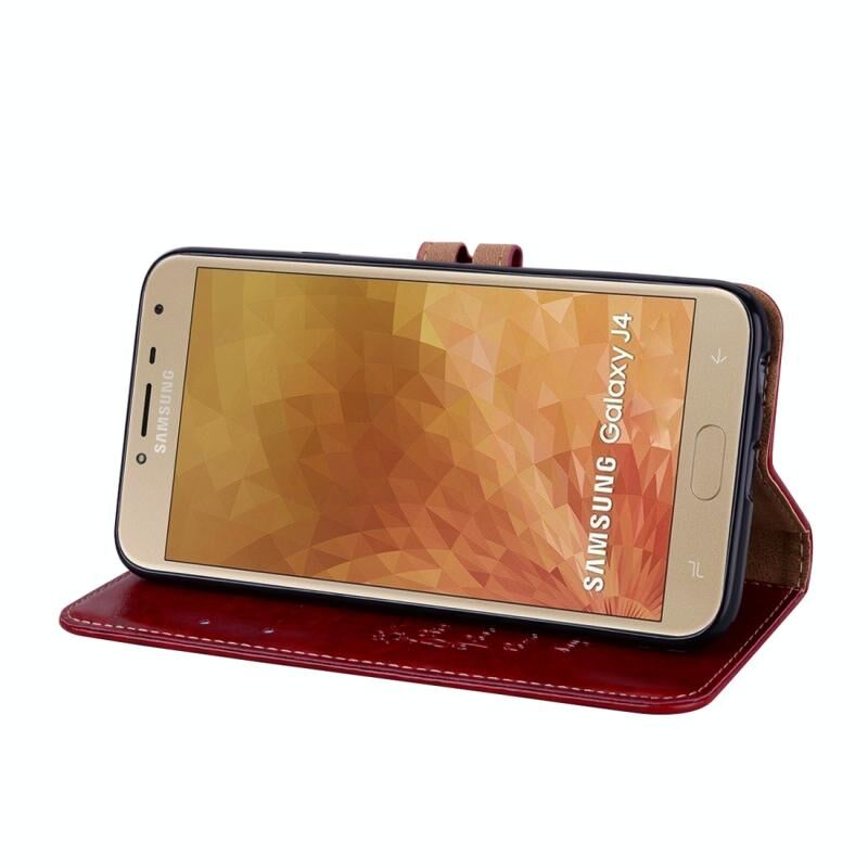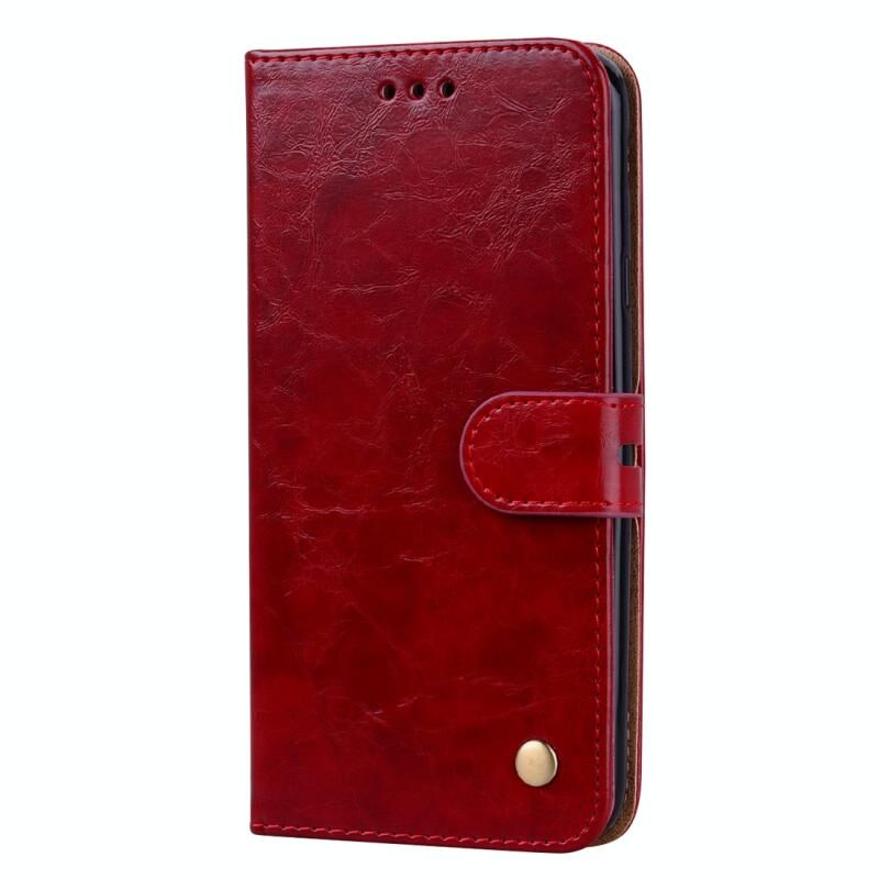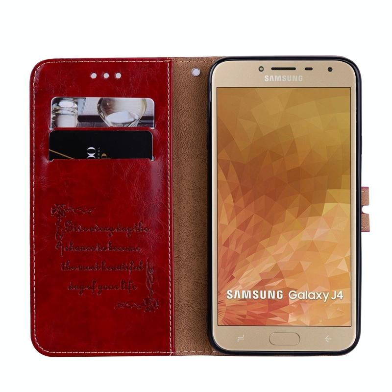 Business Style Oil Wax Texture Horizontal Flip Leather Case for Galaxy J4 (EU Version) (2018), με θήκη & υποδοχές για κάρτες & πορτοφόλι (κόκκινο)