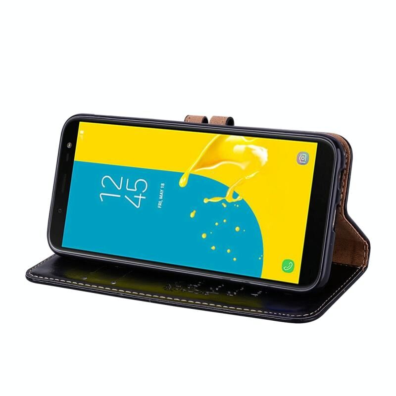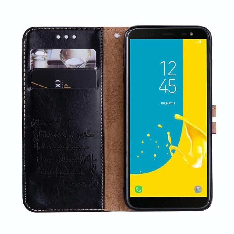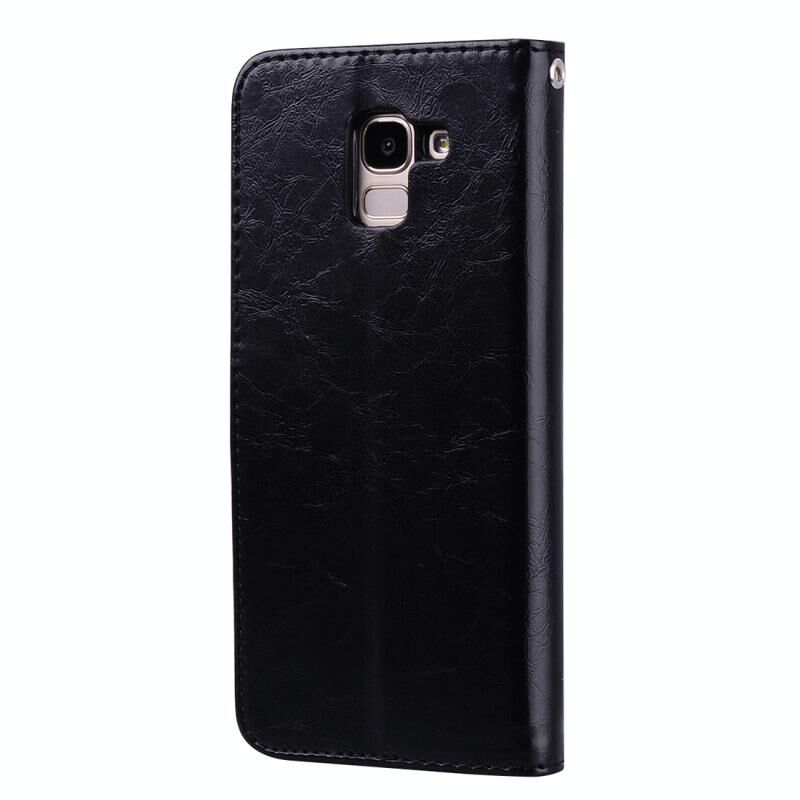 Business Style Oil Wax Texture Horizontal Flip Leather Case for Galaxy J6 (EU Version) (2018), με θήκη & υποδοχές για κάρτες & πορτοφόλι (μαύρο)