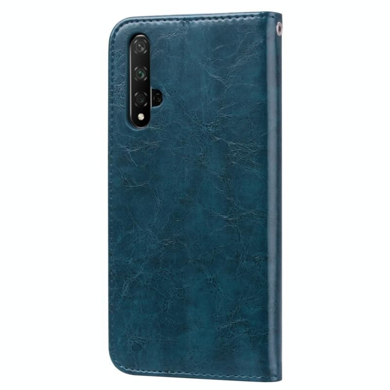 Business Style Oil Wax Texture Οριζόντια Flip δερμάτινη θήκη για Huawei Honor 20, με θήκη & υποδοχές για κάρτες & πορτοφόλι (μπλε)