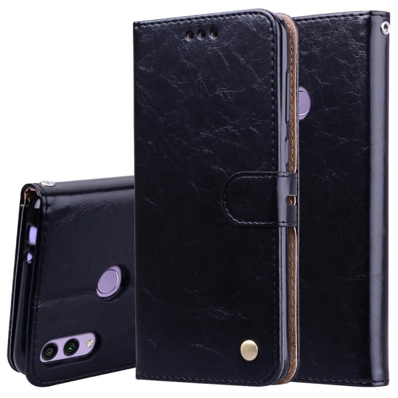 Business Style Oil Wax Texture Οριζόντια Flip δερμάτινη θήκη για Huawei Honor 8C, με θήκη & υποδοχές για κάρτες & πορτοφόλι (μαύρο)