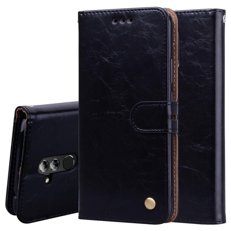 Business Style Oil Wax Texture Horizontal Flip Leather Case για Huawei Mate 20 Lite, με θήκη & υποδοχές για κάρτες & πορτοφόλι (μαύρο)