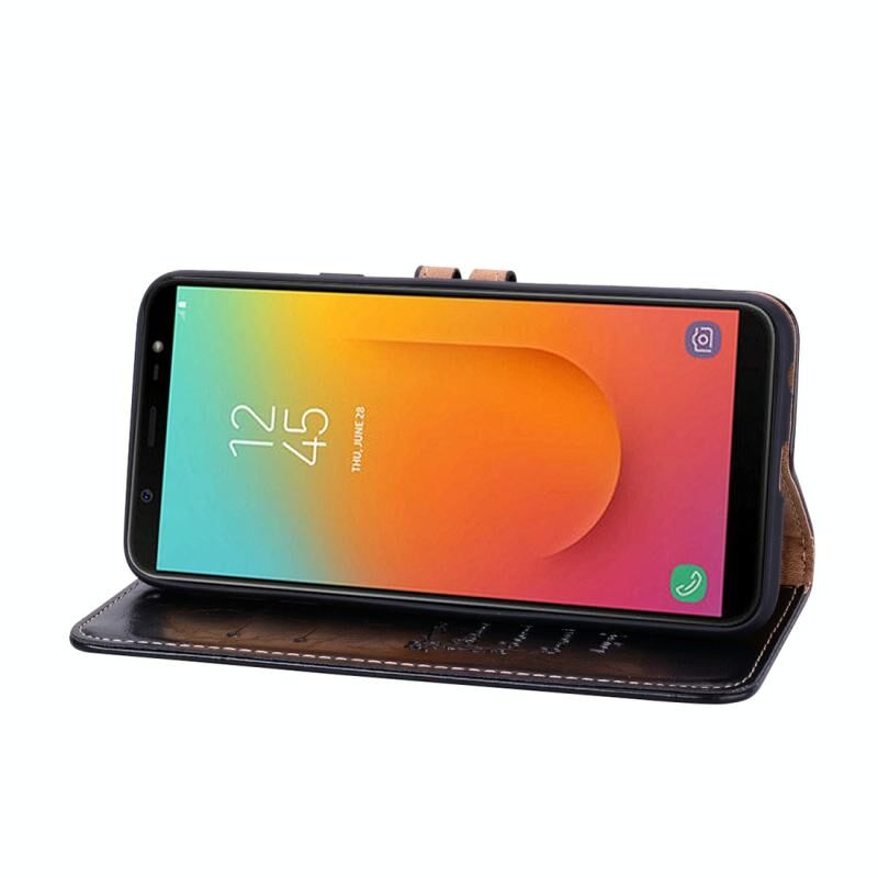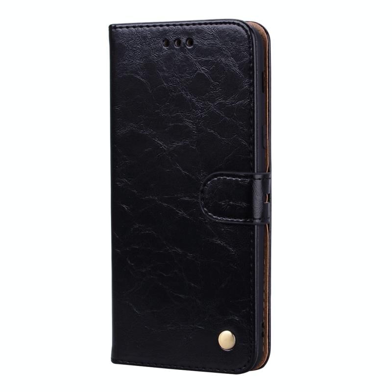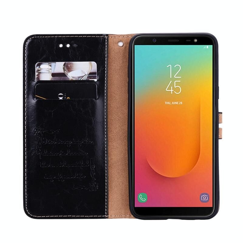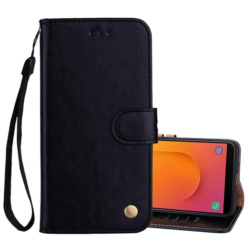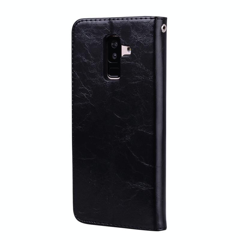 Business Style Oil Wax Texture Horizontal Flip Leather Case, με θήκη για κάρτες & υποδοχές & πορτοφόλι για Galaxy J8 (2018) (έκδοση ΕΕ)(Μαύρο)