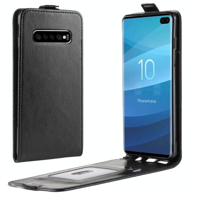 Business Style Κάθετη θήκη από δέρμα TPU για Galaxy S10+, με υποδοχή κάρτας (Μαύρο)