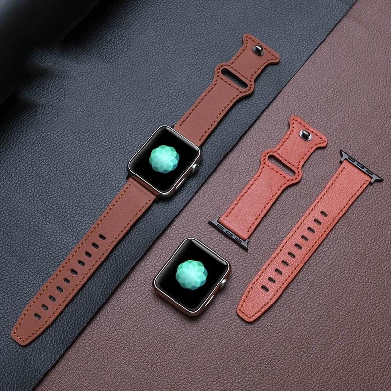 Λουράκι ρολογιού από δέρμα αγελάδας με αγκράφα πεταλούδας για Apple Watch Series 9&8&7 41mm / SE 3&SE 2&6&SE&5&4 40mm / 3&2&1 38mm (Καφέ)