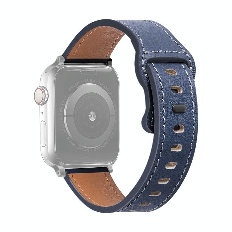 Λουράκι ρολογιού από δέρμα αγελάδας με αγκράφα πεταλούδας για Apple Watch Series 9&8&7 41mm / SE 3&SE 2&6&SE&5&4 40mm / 3&2&1 38mm (Μπλε της νύχτας)