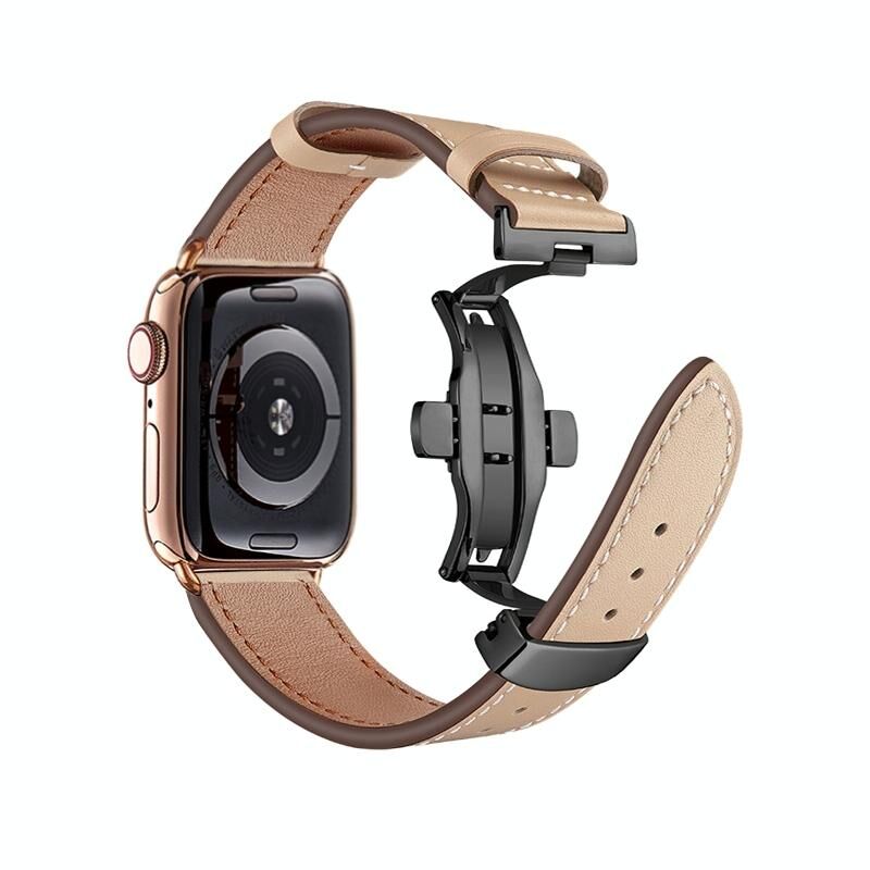 Λουράκι ρολογιού από γνήσιο δέρμα με αγκράφα πεταλούδας για Apple Watch Series 9&8&7 41mm / SE 3&SE 2&6&SE&5&4 40mm / 3&2&1 38mm (Πράσινο+Μαύρη αγκράφα)