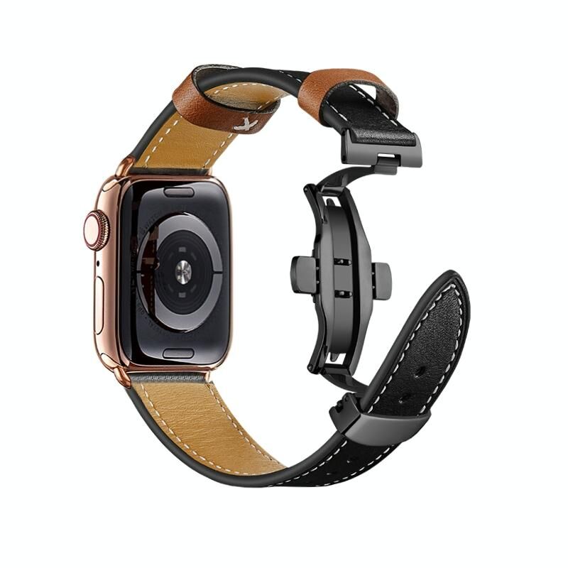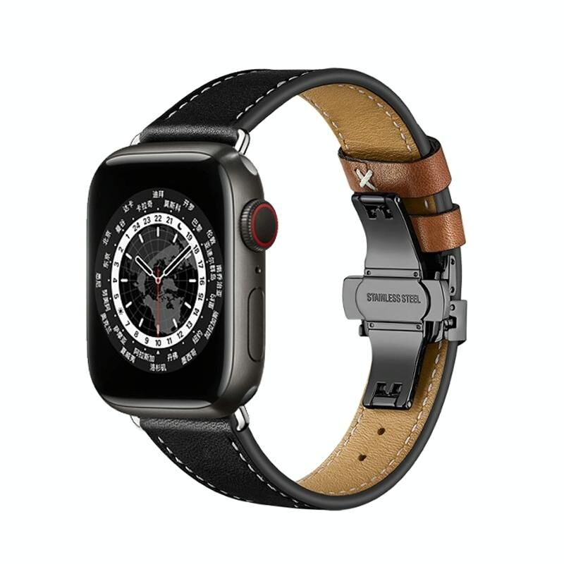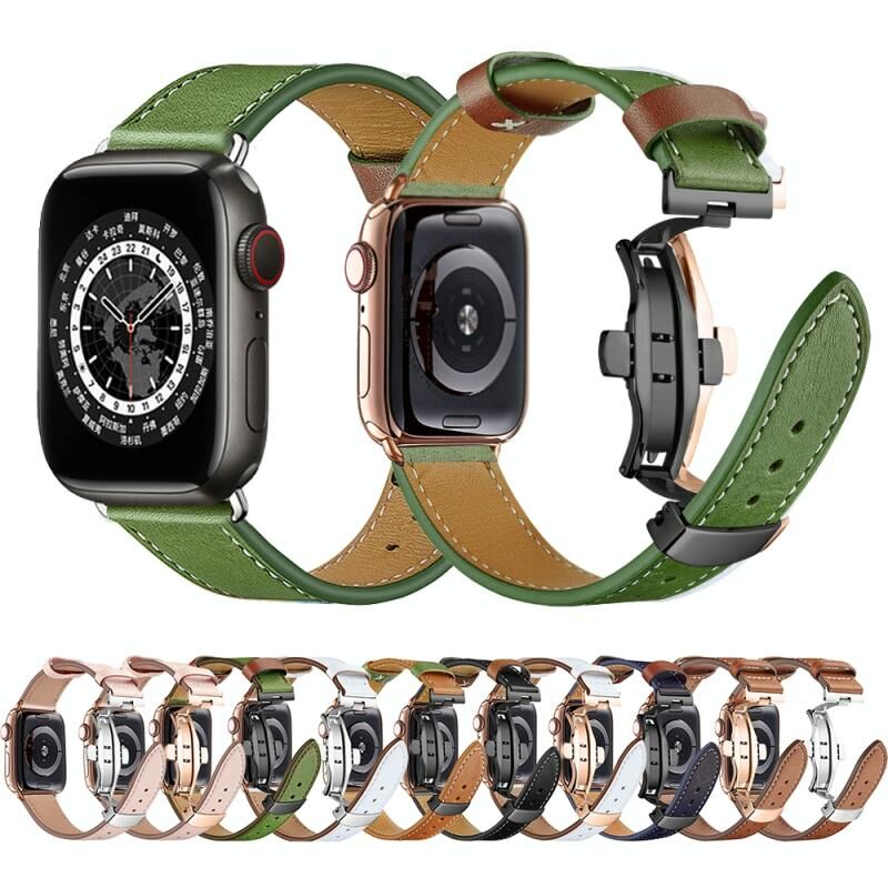 Λουράκι ρολογιού από γνήσιο δέρμα με αγκράφα πεταλούδας για Apple Watch Series 9&8&7 41mm / SE 3&SE 2&6&SE&5&4 40mm / 3&2&1 38mm (Πράσινο+Μαύρη αγκράφα)