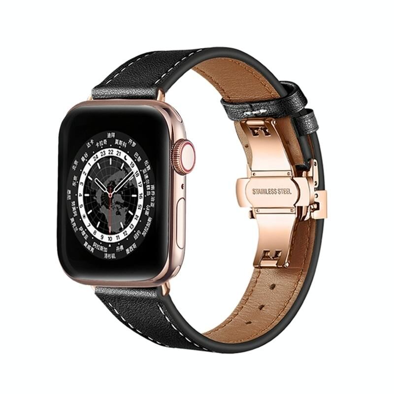 Λουράκι ρολογιού από γνήσιο δέρμα με αγκράφα πεταλούδας για Apple Watch Series 9&8&7 41mm / SE 3&SE 2&6&SE&5&4 40mm / 3&2&1 38mm (Πράσινο+Μαύρη αγκράφα)