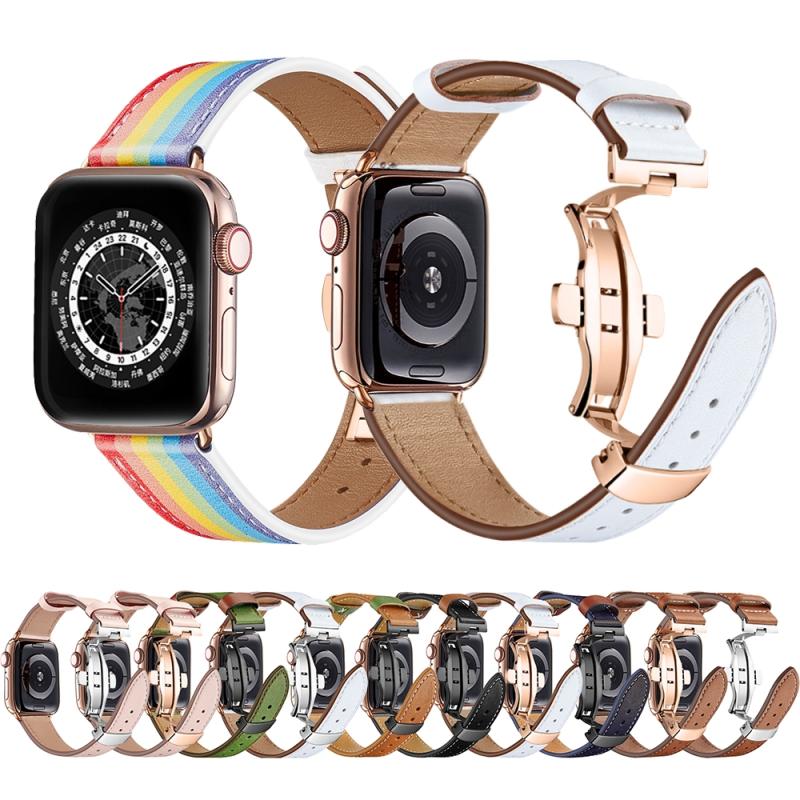 Λουράκι ρολογιού από γνήσιο δέρμα με αγκράφα πεταλούδας για Apple Watch Ultra 49mm & Watch Ultra 2 49mm / Series 9 & 8 & 7 45mm / SE 3 & SE 2 & 6 & SE & 5 & 4 44mm / 3 & 2 & 1 42mm (Πράσινο + Μαύρη αγκράφα)