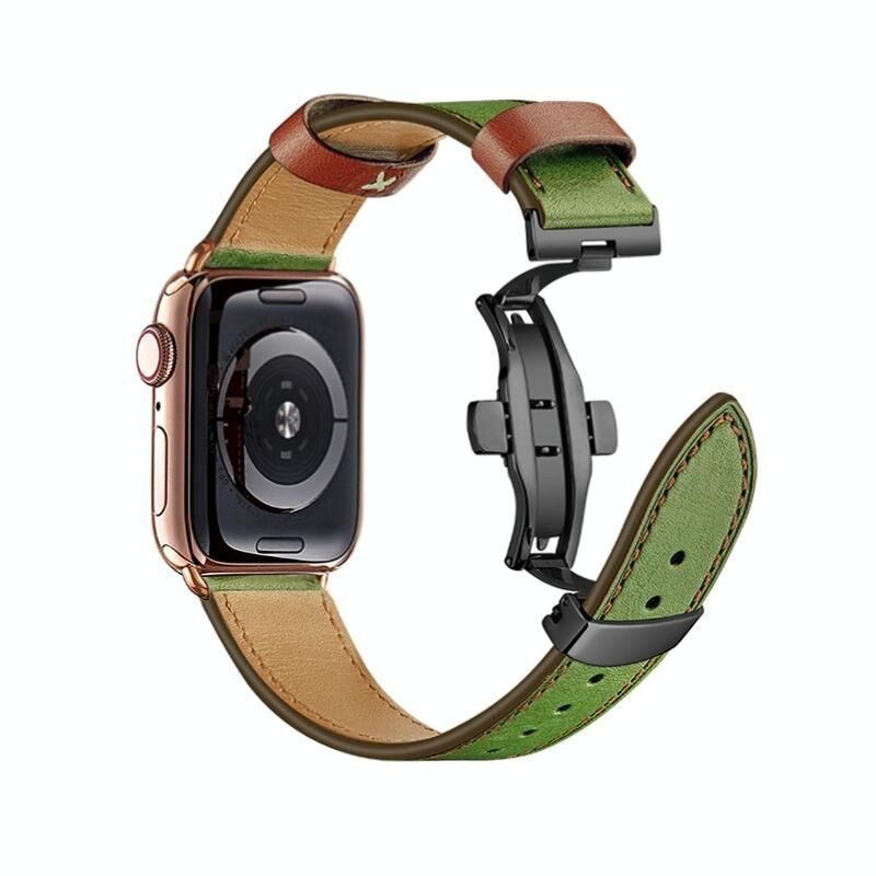 Λουράκι ρολογιού από γνήσιο δέρμα με αγκράφα πεταλούδας για Apple Watch Ultra 49mm & Watch Ultra 2 49mm / Series 9 & 8 & 7 45mm / SE 3 & SE 2 & 6 & SE & 5 & 4 44mm / 3 & 2 & 1 42mm (Πράσινο + Μαύρη αγκράφα)