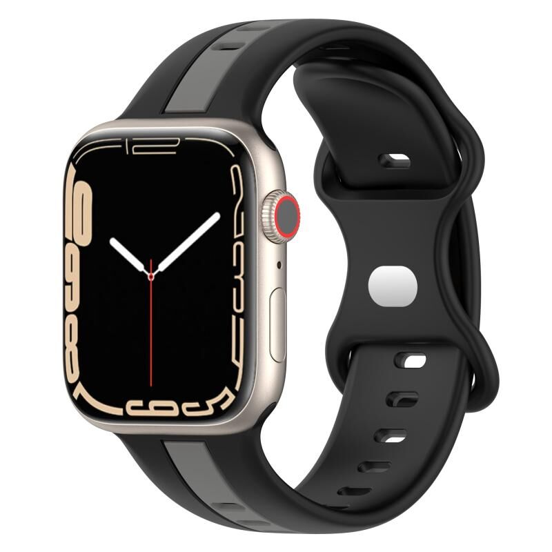 Λουράκι ρολογιού σιλικόνης δύο χρωμάτων με αγκράφα πεταλούδας για Apple Watch Series 8&7 45mm / SE 2&6&SE&5&4 44mm / 3&2&1 42mm (Λευκό+Μαύρο)